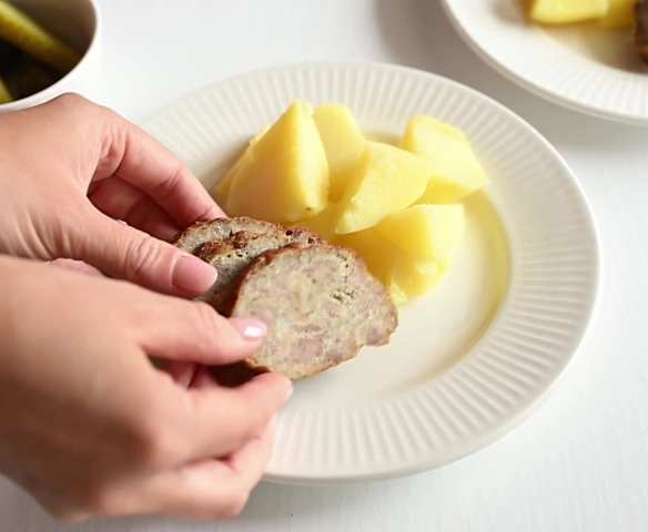 500 gramů vepřového masa na kostky (3 x 3 cm), částečně zmrazeného v jedné vrstvě po dobu 30 - 60 minut