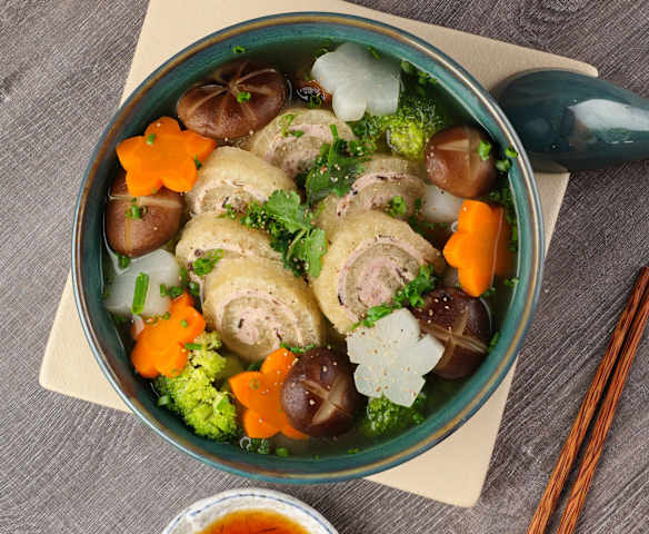 nấm hương khô khoảng 12 cái, ngâm nước ấm 20-30 phút, rửa sạch30 gam