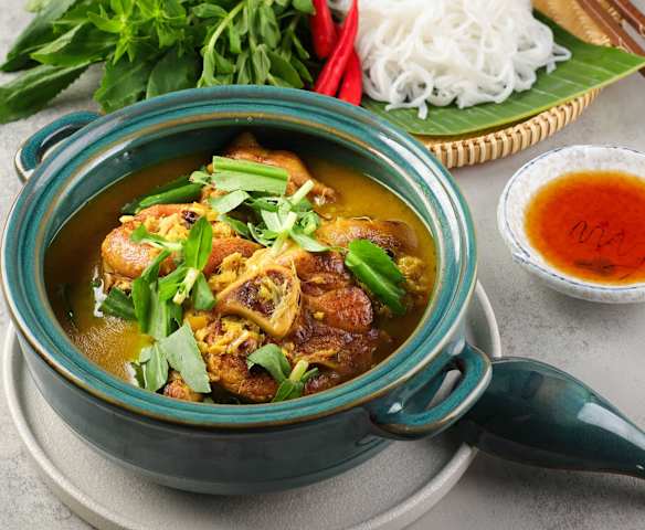 thịt chân giò heo rửa sạch, chần sơ, cắt khoanh dầy (3-4 cm)600 gam
